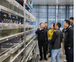 在百岛湖科技园,苏总带领大家考察整个百岛湖水产科技园区,介绍了整个园区的情况以及大数据智慧监管平台、名优水产育种车间和玻璃缸养殖等现代设施渔业的发展利用情况。