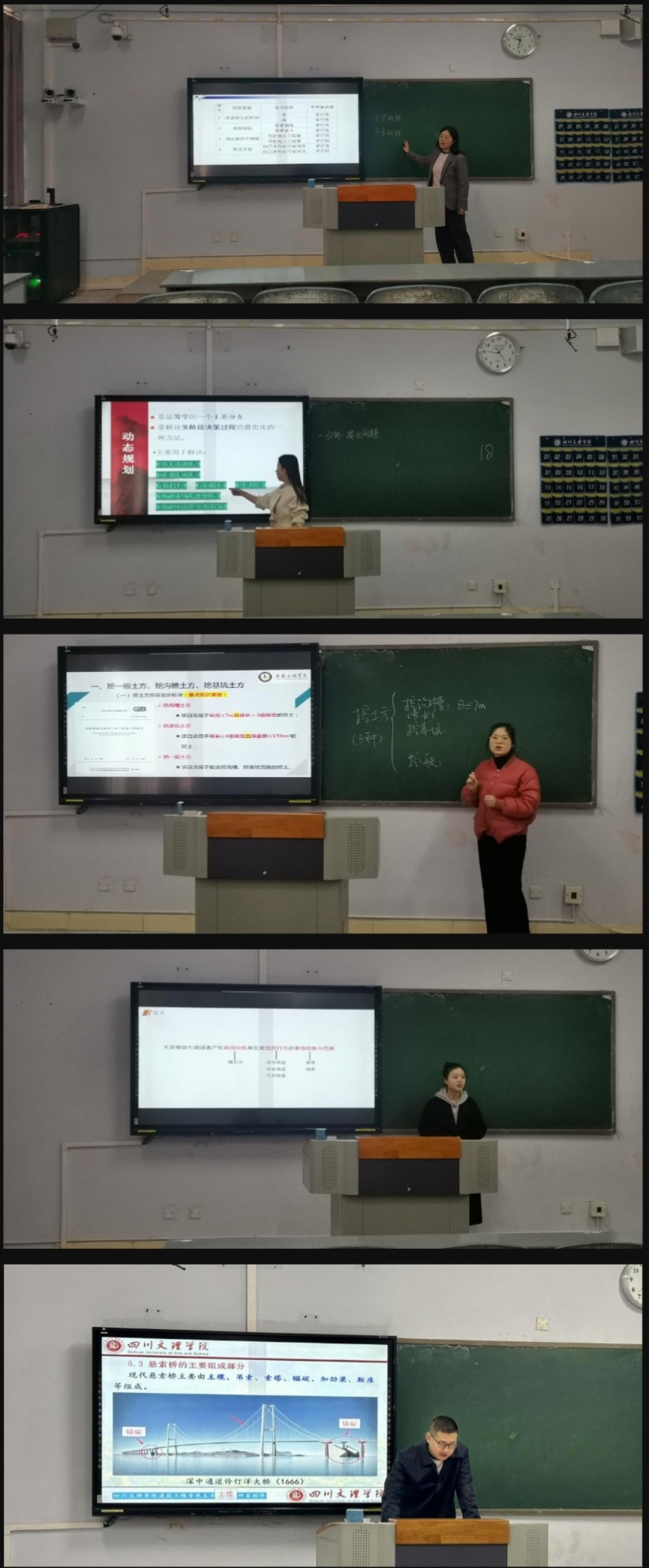 根据学校《四川文理学院关于开展2023年青年教师优质课竞赛暨第四届高校教师教学创新大赛校赛的通知》要求,为深入贯彻党的二十大精神,学习贯彻习近平总书记关于教育的重要论述,坚持立德树人根本任务,落实“以本为本、四个回归”的要求,深入推进高校课程思政建设和新工科、新医科、新农科、新文科建设,推动信息技术与高等教育教学融合创新发展,引导高校教师潜心教书育人,不断激发高校课堂教学活力,我院于11月21日上午在博文楼323教室举办了“2023年青年教师优质课竞赛暨第四届高校教师教学创新大赛院内选拔赛”。经个人申报,教研室推荐,学院5位老师参加院内选拔赛,学院党委书记王峰、教学院长冉燕、土木教研室负责人邓皓、旅游管理教研室主任陈国柱担任本次比赛评委。
