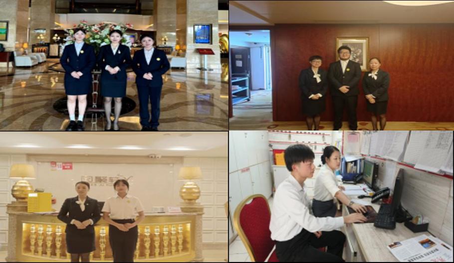 在酒店见习中,同学们被酒店方安排到前台、客房、餐饮、棋牌等多个部门与岗位,在酒店指导老师的悉心指导和帮助下,同学们认真学习、虚心请教,快速适应了酒店的工作环境,圆满完成了酒店见习任务。在此次见习中,同学们践行“诚信、专业、高效、务实”的工作作风,坚持“ 宾客之上”的服务理念,本着“用心服务、以情感人”的工作原则,把所学理论融入到酒店实践工作,同学们在工作中表现出色,得到了酒店众多宾客的好评和酒店方的认可。