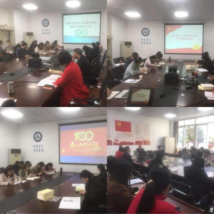 3月24日,学院召开教职工政治学习大会,党总支书记王峰带领全院老师回顾了中国共产党自1921年成立以来团结带领中国人民从浴血奋战,实现民族独立和人民解放、艰难探索,社会主义建设在曲折中前进、改革开放,开辟中国特色社会主义道路的近百年光辉历程和作出的伟大历史贡献,并从习近平总书记关于“知史爱国、知史爱党”的十四个讲话中让全院老师深刻认识了中国共产党近百年光辉历程的历史启示。广大教职工纷纷表示接下来将结合学院党总支的领学,认真自学党史,做到学以致用,将党史教育融入专业课程中,增强学生的中国特色社会主义道路自信、理论自信、制度自信、文化自信。