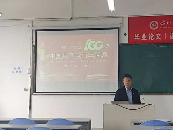 2021年4月下旬,党总支副书记靳浪在成都产教融合基地以《中国共产党百年辉煌》为学生党员上了一堂党课。