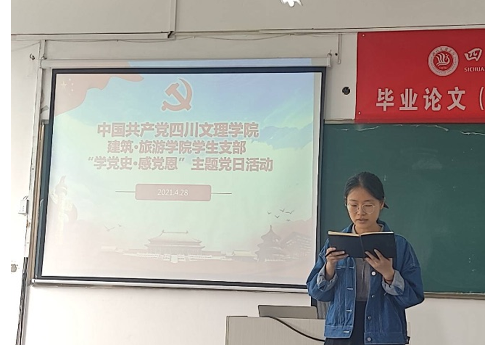 428日,建筑·旅游学院党总支副书记靳浪老师带领全体毕业生党员在四川文理学院成都产教融合基地开展“学党史、感恩党”主题党日活动。通过讲党史故事的形式引导青年学生从党的历史中汲取精神力量,体悟革命精神。
