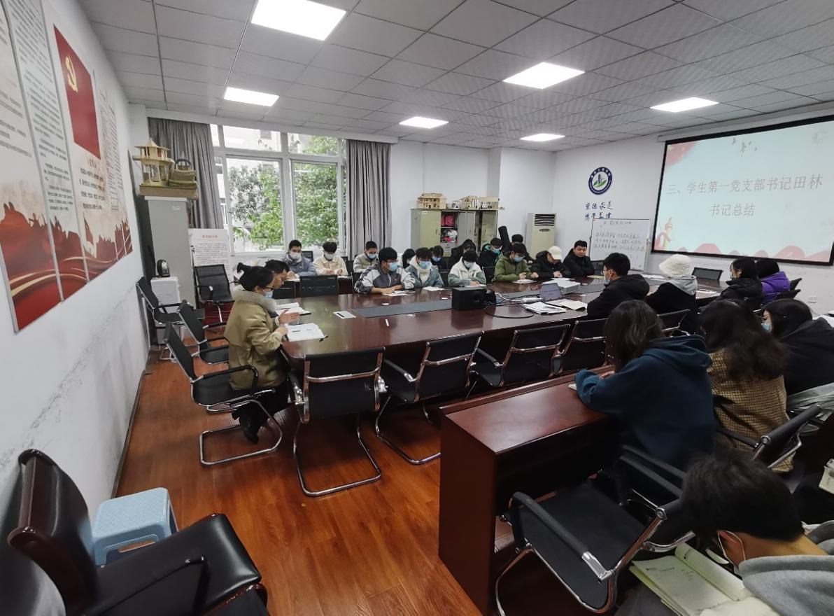 最后,田林老师总结大会内容并对全体支部成员提出三点建议,一是要加强对党史、党章、党规的学习,深入理解和领会其深刻含义;二是要听党话跟党走,执行党的决定。在日常生活中做好党员模范带头作用,为同学们树立正确的榜样示范;三是在面对新冠疫情反复的情况,我们要始终相信党的领导,不信谣不传谣,服从安排,积极配合疫情防控工作,做好自身防护。