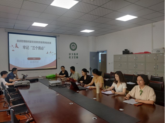 为深入开展学习贯彻习近平新时代中国特色社会主义思想主题教育,6月14日,旅游管理教研室党支部党员张晓老师以“牢记‘三个务必’”为题为支部全体党员上了一堂生动的微党课。