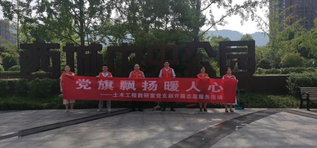 为庆祝中国共产党成立102周年,进一步激发全体党员的爱国爱党热情,增强广大党员的光荣感、 使命感,激励全体党员继承和发扬党的光荣传统,提振干部精气神,增强党员队伍的凝聚力、创造力和战斗力。7月11日上午,学院土木工程教研室党支部赴通川区皂角垭社区西城中央公园开展以“党旗飘扬暖人心”为主题的志愿服务活动。