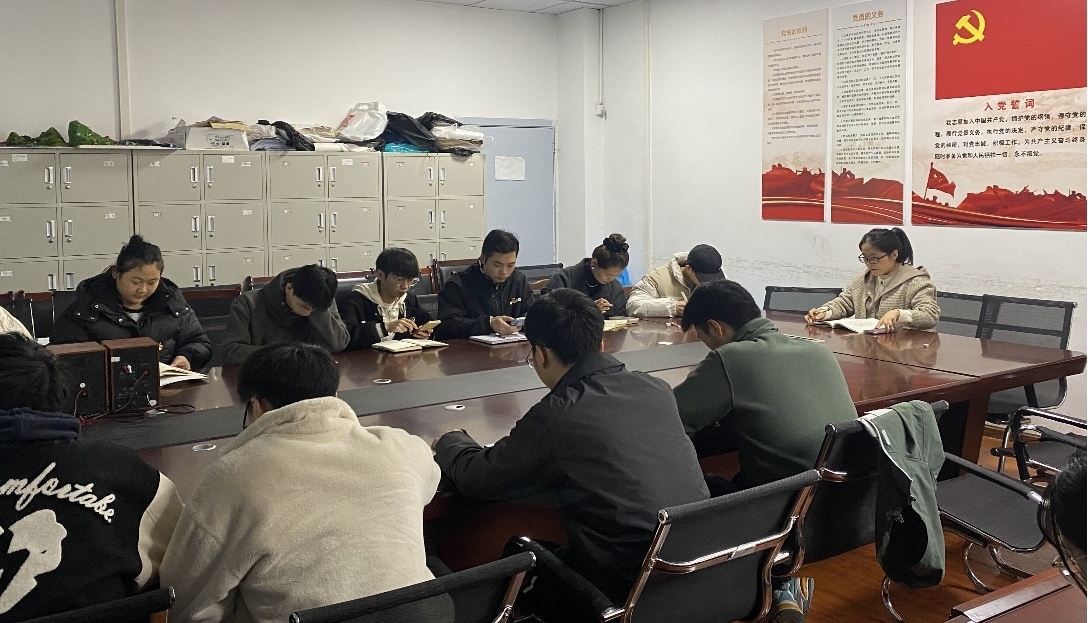 会前田林同志强调了会议纪律,全体党员共同温习了党的章程。感知到作为党员必须做到认真学习党的知识,坚持党和人民的利益高于一切,维护党的团结统一,加强党性修养。随后,田林同志带领全体党员学习了《关于进一步加强青年科技人才培养和使用的若干措施》。通过学习,大家领会到培养用好青年科技人才,对加快实现高水平科技自立自强,建设科技强国和人才强国的重大意义。大家纷纷表示一定会学好、用好专业知识,在科技创新中展现更多青年担当。观看政论片《领航》后,大家深刻认识到中国共产党“全心全意为人民服务”的宗旨,不仅表现在以马克思主义思想为指导的无产阶级革命上,也表现在为中国人民谋幸福,为中华民族谋复兴上。