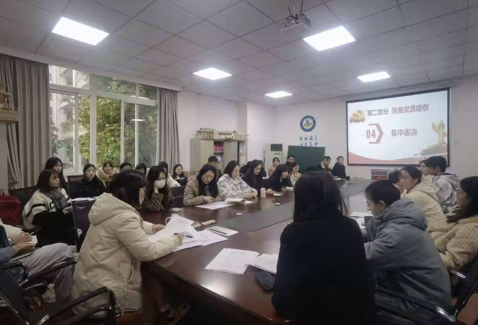 首先,按照党组织接收预备党员各项程序,郭丹等8名同志从对党的认识、入党动机、本人履历、家庭等主要社会关系,以及需向党组织说明的问题等方面进行汇报,表明自己已经做好接受党组织考验的准备。随后,入党介绍人介绍发展对象在考察培养期间政治思想、工作学习等方面的综合表现,并对其能否入党表明意见。莫春梅同志向大会报告了每位党员发展对象的综合审查情况和支部意见,与会党员充分讨论每位党员发展对象是否符合党员条件,经支部大会正式党员无记名投票表决,同意吸收郭丹等8名同志为中共预备党员。