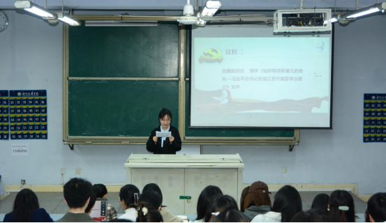 活动在庄严的国歌声中拉开帷幕。全体与会党员首先集中学习了习近平总书记在全国“两会”期间发表的重要讲话,以及关于全面从严治党、高质量发展及教育强国的重要论述。张魏霞老师结合《始终保持弄潮儿的角色——习近平总书记参加江苏代表团审议侧记》和《“今天大家一起来共商教育大计”——习近平总书记看望参加政协会议的民盟民进教育界委员并参加联组会侧记》两篇学习材料,深入浅出地解读了党员应如何立足中国式现代化全局,关注职业教育与高等教育协同发展,将德育贯穿育人全过程。张老师强调,作为新时代的学生党员,必须时刻保持清醒头脑,紧跟时代步伐,不断提升自我。