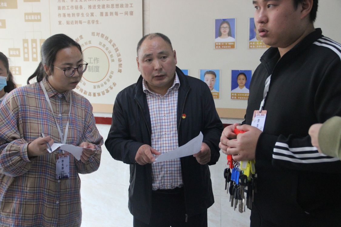 老师们分别从寝室卫生、用电安全、节约用水和寝室文化建设等方面进行细致检查。走访过程中,老师们对总体情况较好的寝室加以肯定,对脏乱差的寝室进行了批评教育。老师们一边检查一边和同学们聊家常,提醒同学们注意用电安全,保持室内通风、卫生干净。王书记勉励同学们要养成良好的生活、学习习惯,合理分配时间,按时作息,注重个人修养,共同营造整洁、和谐、文明、奋进的环境。