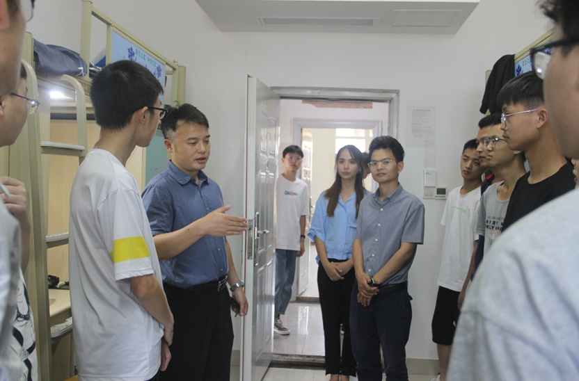 下午五点,学院师生兵分两路分别前往我院2021级新生寝室——莲湖校区11舍、12舍。走访中,学院领导、老师与同学们亲切交流,了解同学们对新环境的适应情况,向同学们强调了消防安全的重要性。副院长冉燕教授与同学们交流时谈到,要主动与他人交流,尤其是要和师兄师姐、老师们多交流,尽快适应新的学习环境和节奏,学好专业知识,锻炼真本领。靳浪老师说,大学里同学们要更加自律,少打游戏,多锻炼身体,多看书,合理规划好自己的大学生活,努力成为国家建设发展的重要人才。王峰书记就专业方面对新生提出了相应的建议,希望同学们树立坚定的目标,勇往直前,同时还要在大学期间发展自己的兴趣爱好,努力实现一专多能。