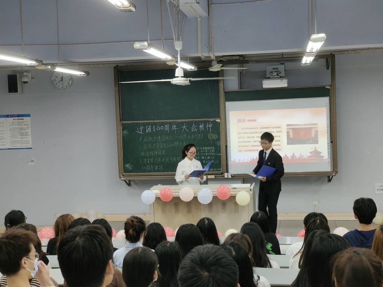 2022年5月15日20:00,十大买球的正规网站酒店管理专业2021级1支部于博文楼327教室开展“建团一百周年大会精神”团日活动。此次活动由张文玉、龙之乐主持。