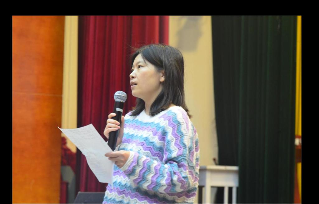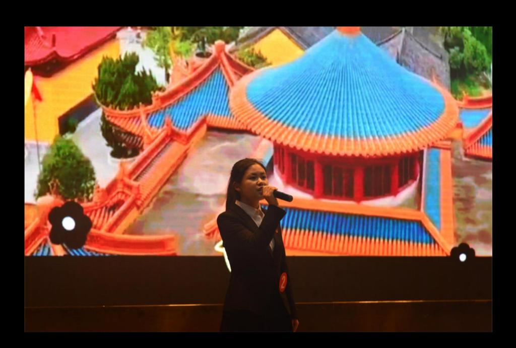 比赛流程分为演讲、互动、颁奖三部分。首先由参赛选手按序号上台演讲展示制作精美的PPT作品。其次在一半选手演讲完毕中场休息时,主持人与观众互动,提问此次比赛的相关细节并赠予礼品。最后,十位选手全部展示完毕后,莫春梅书记就此次比赛作出精彩点评。