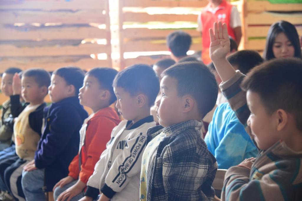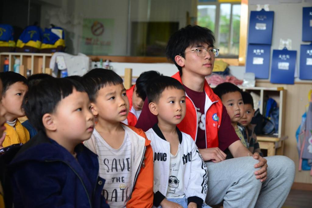 到达目的地后,志愿服务有序展开,由一名志愿者担任主讲人,其他志愿者辅助引导小朋友思考和表达。