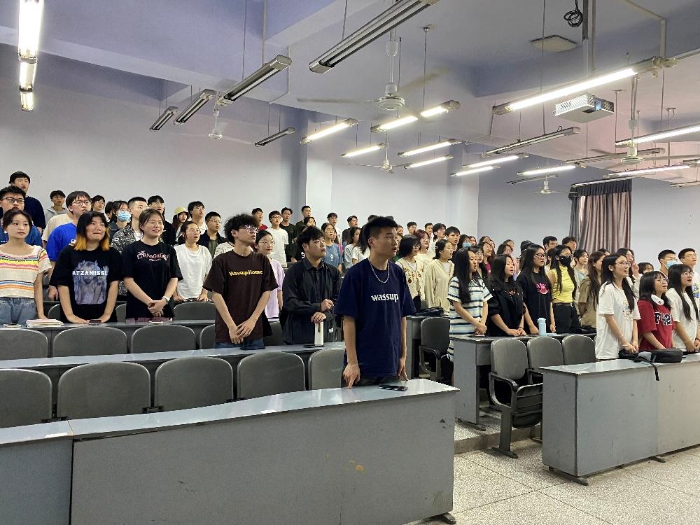 第三部分:擎未来,勇作为。未来属于青年,希望寄予青年。新时代的中国青年要以实现中华民族伟大复兴为己任。增强中国人的志气、骨气、底气,不负时代,不负韶华,不负党和人民的殷切期望!我们生逢其时,坚定不移听党话、跟党走,怀抱梦想又脚踏实地,敢想敢为又善作善成,立志做有理想、敢担当、能吃苦、肯奋斗的新时代好青年,让青春在全面建设社会主义现代化国家的火热实践中绽放绚丽之花。由此,三位学生代表以“五四青年节和我的人生路”为主题,分享了他们所熟悉榜样故事。他们表示,应当将榜样们的故事作为精神丰碑,激励自己在未来的道路上奋发向前。