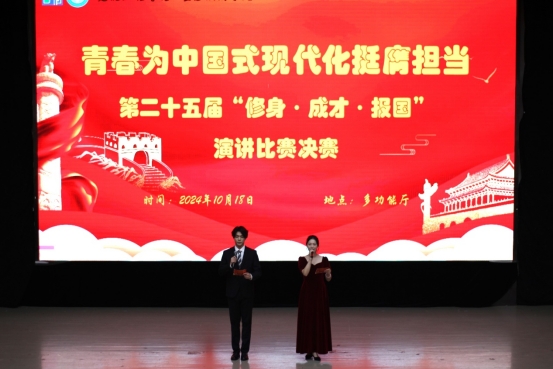 为引领广大青年深刻领悟时代使命,鼓励广大青年为中国式现代化进程注入多元智慧和创新活力,10月18日晚7点,我院在艺术传媒大楼多功能厅成功举办以“青春为中国式现代化挺膺担当”为主题的第二十五届“修身·成才·报国”演讲比赛决赛。学院党委副书记莫春梅、学工办副主任田林、专职辅导员明巧到场并担任比赛评委,学院各班学生代表到场聆听比赛。