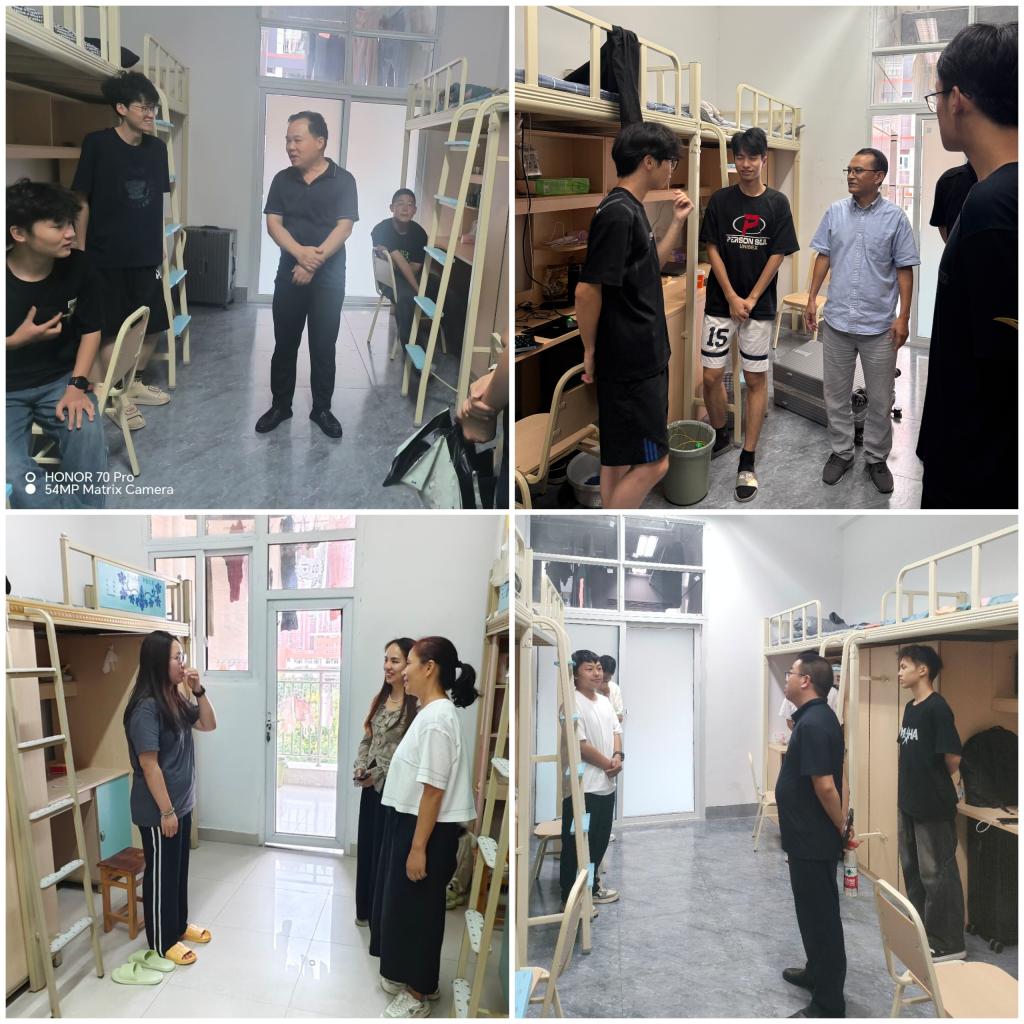 9月11日下午,在新生顺利入住寝室后,学院党委书记李玉印、院长彭洪斌带领学院领导班子成员及辅导员,深入各新生寝室开展检查工作,将学院的关怀与问候送到每一位新生身边。