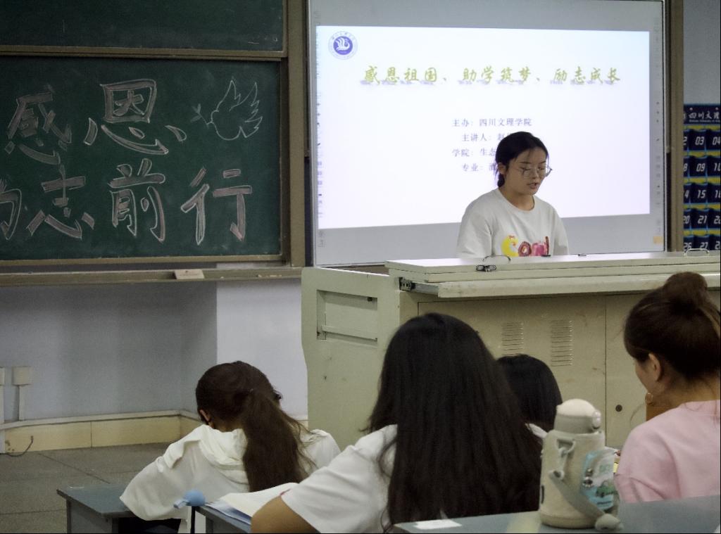 为贯彻落实立德树人根本任务,深入宣传党和国家的资助政策,发挥学生资助工作的育人功能,为使学生正确认识国家资助意义,更好理解国家、学校的资助政策,引导他们常怀感恩之心、立志砥砺前行。学院于2024年5月16日,在四川文理学院莲湖校区博文楼114教室举办了资助感恩教育活动。本次活动由学院专职辅导员张魏霞主持,邀请了5位受助学生代表汪伶香、李诗蕊、谢语婷、刘秋敏、赵倩岚主讲,学院各年级学生代表及受助学生参与活动。