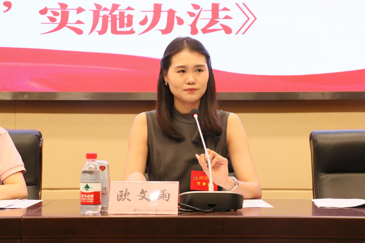 会议期间,欧文雨对学院“学分制第二课堂成绩单制度”实施办法进行了详细解读。她系统阐述了该制度的核心内容与实施细则,着重强调了第二课堂在拓展学生综合素质、促进全面发展方面的重要赋能作用,旨在推动构建“第一课堂”与“第二课堂”深度融合、协同育人的长效机制,为学生的个性化成长与能力提升搭建广阔平台。