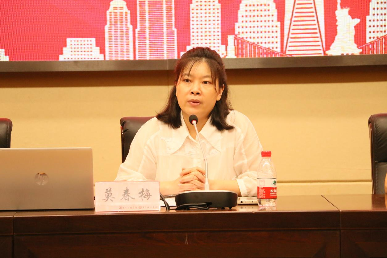 随后,莫春梅针对团学部门一年的优秀佳绩作总结讲话,她首先向上一届团总支学生会干部致以诚挚谢意,高度肯定了他们在过去一年为学院团学工作付出的心血与汗水,接着,向新一届团学干部表示热烈祝贺,并对他们寄予厚望。她强调,新一届团学干部要坚定理想信念、坚守服务初心,以高度的责任感和使命感担当作为,积极回应师生的期许;在服务同学成长、推动学院团学事业发展的实践中,不断绽放青春光彩,奋力续写工作新篇章。