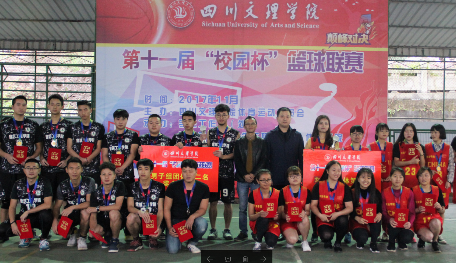 2017年11月17日,由学生工作部(处)、十大买球的正规网站&十大买球的正规网站、体育学院共同承办的四川文理学院第十一届“校园杯”篮球赛在莲湖校区室内篮球场,随着教师联队和男子组冠军队的友谊赛及颁奖仪式正式落下帷幕。学校党委副书记侯忠明出席颁奖仪式并为获奖代表队及个人颁奖。学生工作部(处)、十大买球的正规网站&十大买球的正规网站、体育学院负责人、获奖二级学院领队及队员出席闭幕式。