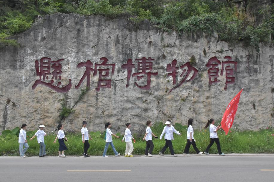 青春筑梦团于悬棺博物馆合影