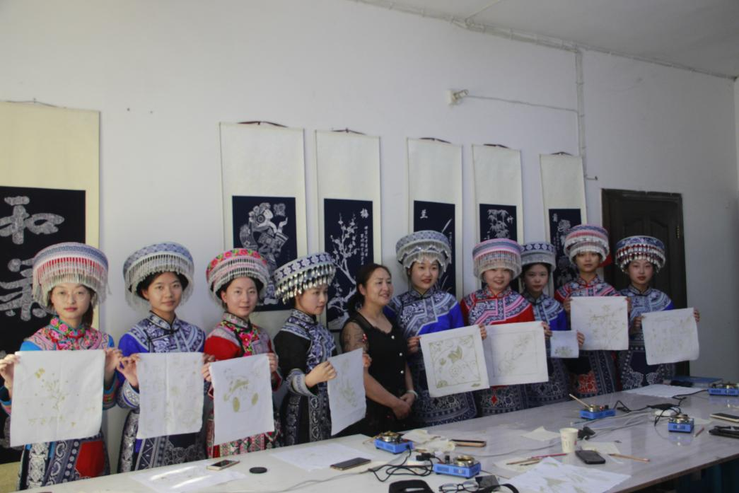 青春筑梦团体验苗服及制作蜡染作品