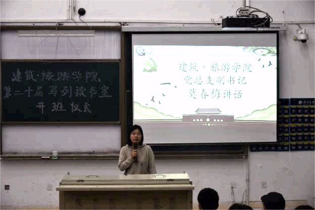 为深入学习党的理论知识,不断提高青年大学生的思想觉悟,牢固树立社会主义核心价值观,2023年11月5日,建筑旅游学院在莲湖校区一教学楼114教室举行了第二十届“马列读书室”活动开班仪式。学院党委副书记莫春梅老师、辅导员田林老师、何双双老师、彭金老师、王运老师及学院主要团学干部参加了本次活动。