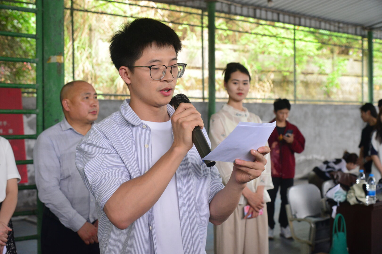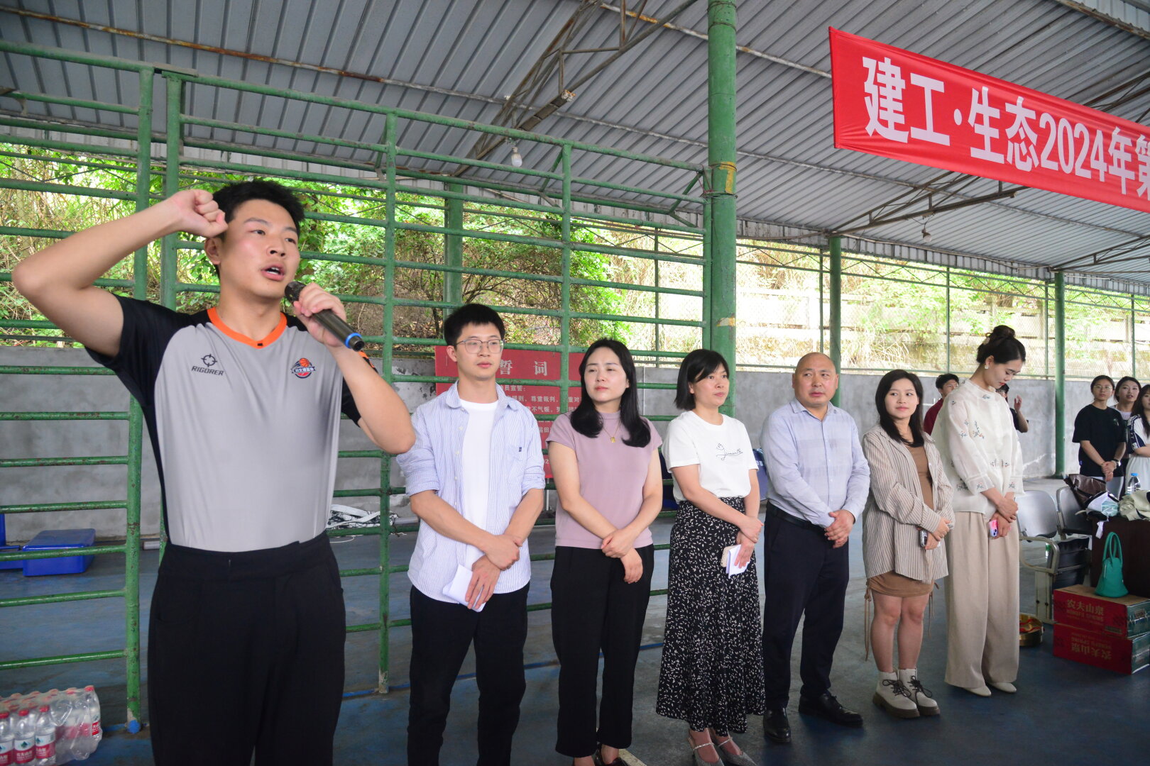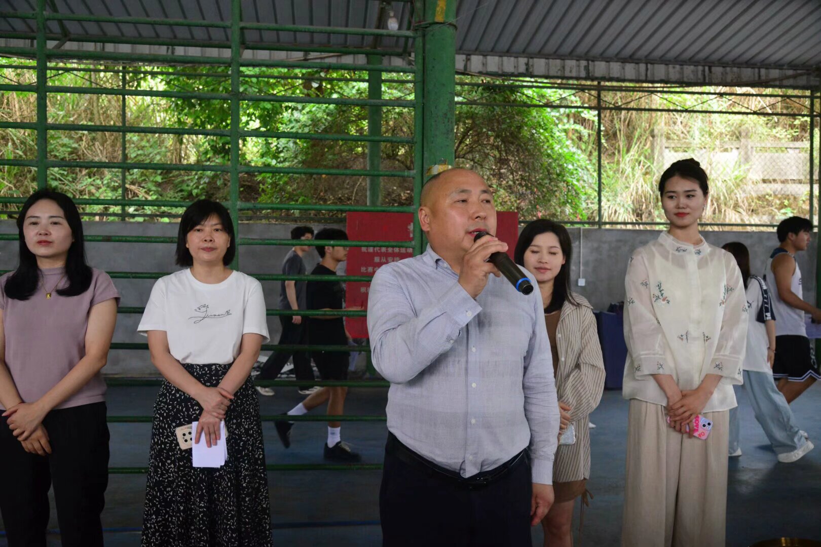 本次开幕仪式由学工办主任田林老师主持,她介绍了到场的领导和老师、以及开幕式的整体议程。接下来,王运老师宣读了篮球比赛的规则,要求各位运动员们一定要尊重对手、服从裁判、遵守篮球赛场规则。