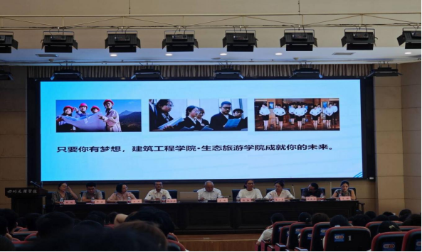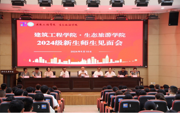 2024年9月10日下午,建筑旅游学院新生师生见面会在学术报告A厅隆重举行。学院党委书记王峰、院长彭洪斌、正处级组织员杨红、副院长冉燕、党政办主任秦小苏、酒店管理教研室主任陈国柱、城乡规划教研室副主任乔娜、土木工程教研室负责人邓皓、专职辅导员老师们以及全体新生出席此次见面会。见面会由学院正处级组织员杨红主持。