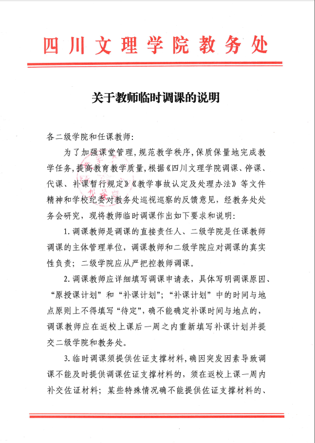 四川文理学院教务处关于教师临时调课的说明