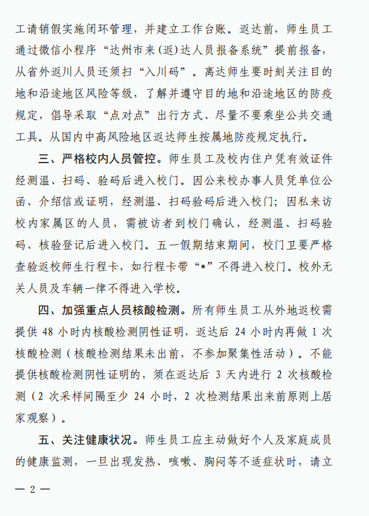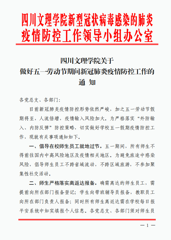 关于做好五一劳动节期间新冠肺炎疫情防控工作的通知