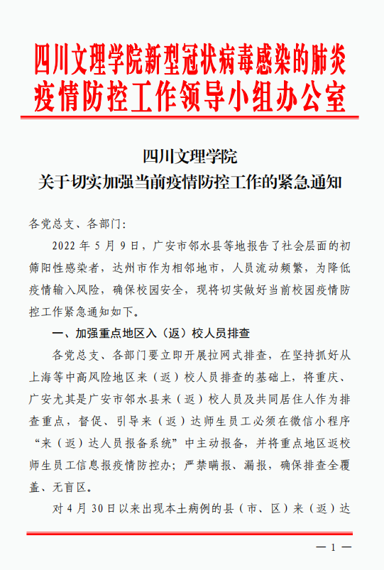 四川文理学院关于切实加强当前疫情防控工作的紧急通知