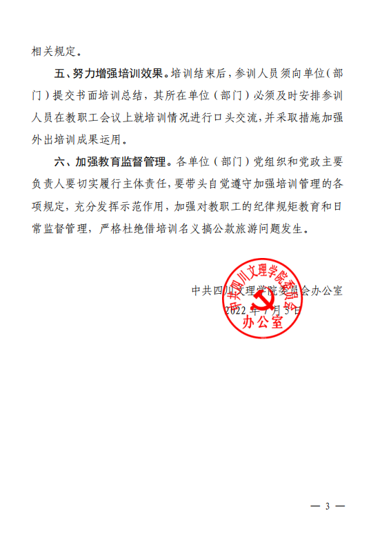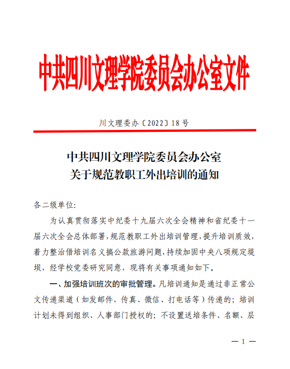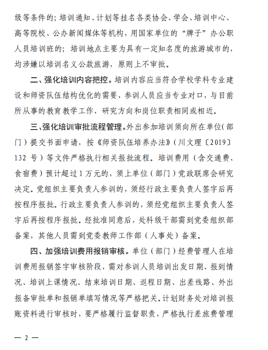中共四川文理学院委员会办公室 关于规范教职工外出培训的通知