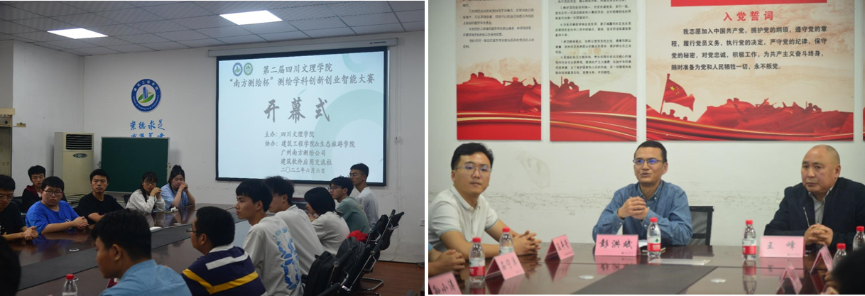 为深入学习宣传贯彻党的二十大精神,积极响应“大众创业、万众创新”的号召,充分发挥以赛促学、以赛促教、以赛促创的作用,有效激发学生积极参与科技创新实践的热情,提升大学生创新创业的意识和能力,着力培养“三心四能五复合”的优秀人才,我院携手南方测绘公司于2023年6月6日举办了第二届四川文理学院“南方测绘杯”测绘学科创新创业智能大赛。党委书记王峰、院长彭洪斌、南方测绘公司负责人温丰营、指导教师石宁卓等及我院40多名优秀学子参加此次开幕式。