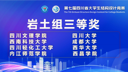 2022年9月30日下午,由四川省教育厅主办,西南石油大学承办的第七届四川省大学生结构设计竞赛圆满结束,经过3天的激烈角逐,我院结构组代表队和岩土组代表队从21所高校代表队中脱颖而出,结构组荣获二等奖,岩土组荣获三等奖。