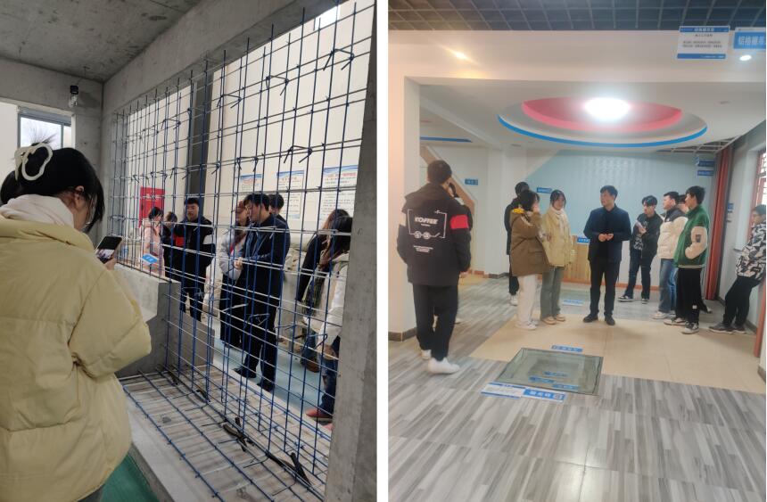 为学习借鉴我院建筑工程技术省级实验教学示范中心在建筑行业从业人员培训教育方面的经验和做法,2023年12月27日,由达州职业技术学院智能建造学院任厚洪院长带队,智能建造学院师生20余人来到工程训练中心实体模型楼考察学习,学院土木工程教研室主任邓皓老师、实验室侯荣老师、杨晓铃老师陪同考察。