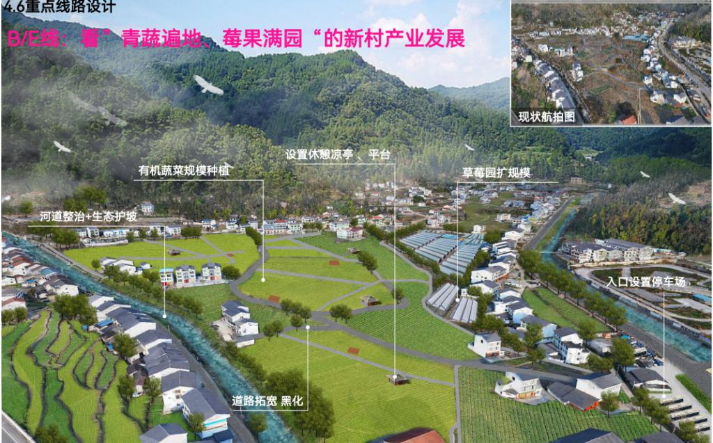 规划设计团队通过村庄航测实景模型,直观、立体地展示了杉林湾村的现状和杉林湾村的近、远期规划内容。在整体结构布局方面,围绕“强农、拓产、兴旅”的总体发展思路,以高效现代农业、田园休闲产业为重要依托,逐步形成村域“一轴一带两环五区多点”的空间结构,全力打造村庄农文旅融合的产业链,助推杉林湾村全面振兴发展。同时,瞄准目标客群,融合需求与资源,定制了科普游戏、绿野体验、亲近自然等六大特色活力场景和基础服务功能,推出亲子互动、品质康养、生态悠活三条旅游环线,促进旅游业发展。在村庄道路交通方面,规划注重补齐设施短板,打通断头路、拓宽产业路,提升路面质量,改善通行能力,并结合线路布局提供了断面类型及建设要求。