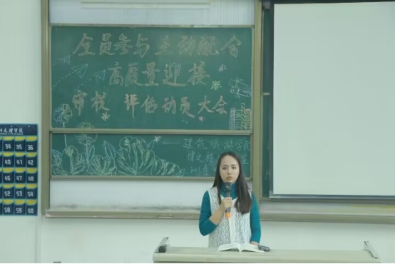 为深入贯彻落实学校关于本科教育教学审核评估工作的重要部署,4月16日下午,学院学工办在博文楼114教室召开"全员参与 主动配合 高质量迎接审核评估"动员大会。学院党委副书记莫春梅出席会议并讲话,全体专职辅导员、团学干部及班干部代表参加会议。会议学工办副主任田林主持。