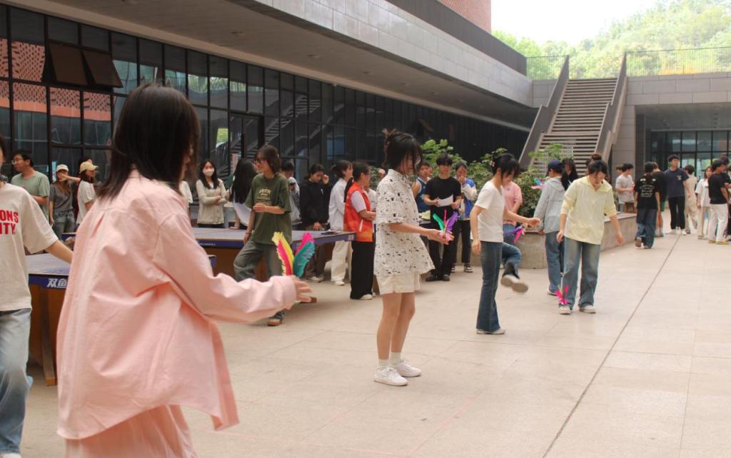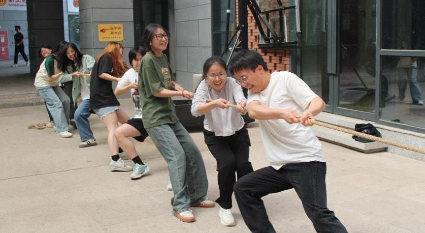 为丰富校园文化生活,增强学生体质,促进各年级学生交流互动,4月14日下午3点至5点,学院在体育馆健美操馆前广场成功举办主题为"快乐不设限,青春正当时"的趣味运动会。本次活动设置了拔河、踢毽子和丑小鸭赛跑三个趣味竞赛项目,吸引了全院各年级学生的积极参与。
