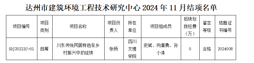 达州市建筑环境工程技术研究中心2024年11月项目结项情况通报