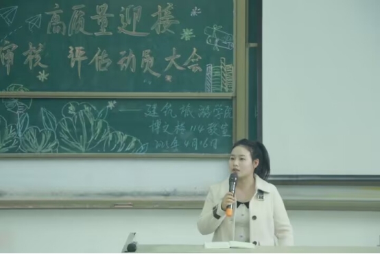 为深入贯彻落实学校关于本科教育教学审核评估工作的重要部署,4月16日下午,学院学工办在博文楼114教室召开"全员参与 主动配合 高质量迎接审核评估"动员大会。学院党委副书记莫春梅出席会议并讲话,全体专职辅导员、团学干部及班干部代表参加会议。会议学工办副主任田林主持。