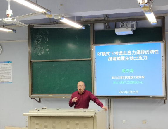 为进一步强化专业认知,紧跟行业前沿热点,3月25日,我院周亦涛教授予博文楼228教室开展题为"RT模式下考虑主应力偏转的刚性挡墙地震主动土压力"的专题学术讲座。此次学术活动吸引了学院工程造价、土木工程、工程管理三个专业百余名师生前来参加。